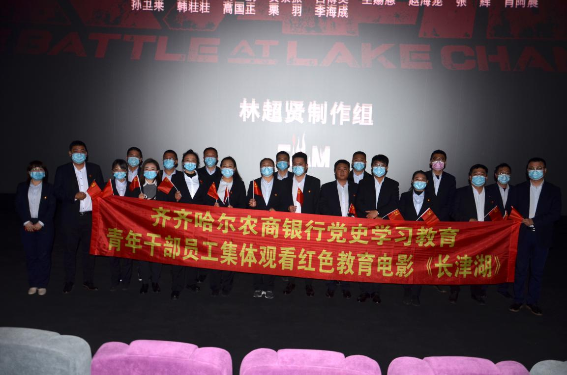 10月12日,齐齐哈尔农商银行党委组织青年干部员工集体观看抗美援朝战争题材影片《长津湖》,进一步加强党员青年爱国主义教育,推动齐齐哈尔农商银行党史学习教育及“我为青年办实事”实践活动深入开展。