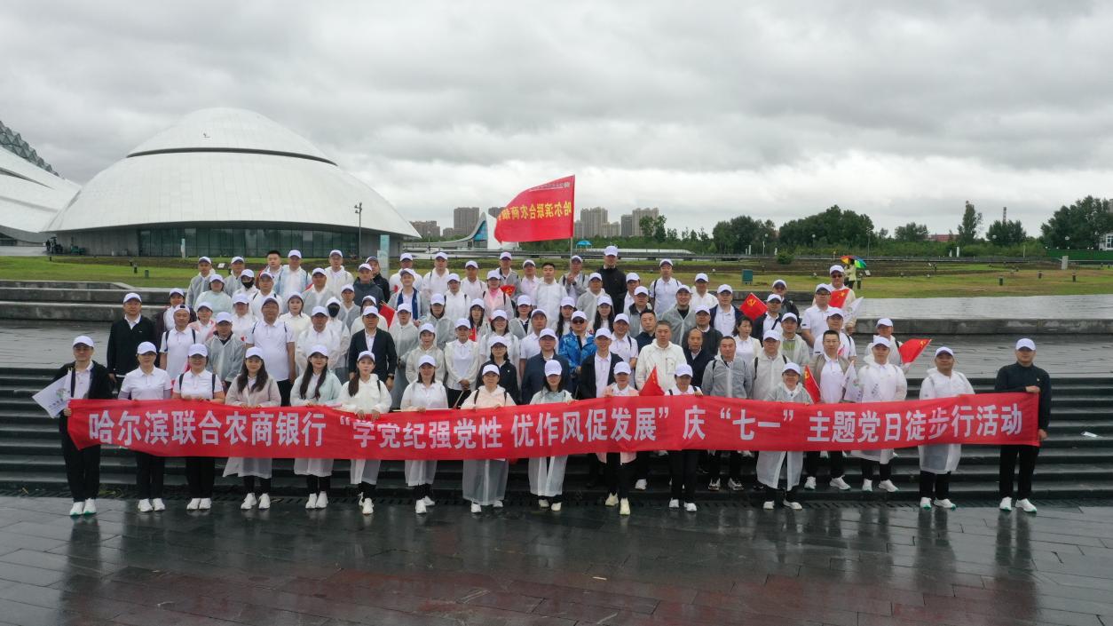 为庆祝中国共产党成立第103周年,进一步加强党纪学习教育,强化能力作风建设,提升团队凝聚力,增强员工身体素质,努力建设“活力农信”,全力打造行业发展龙头。6月23日上午,哈尔滨联合农商银行组织开展“学党纪强党性 优作风促发展”庆“七一”主题党日徒步行活动。总行党委班子、机关各部室、营业部及辖内12家县级行社450余名员工参加活动。