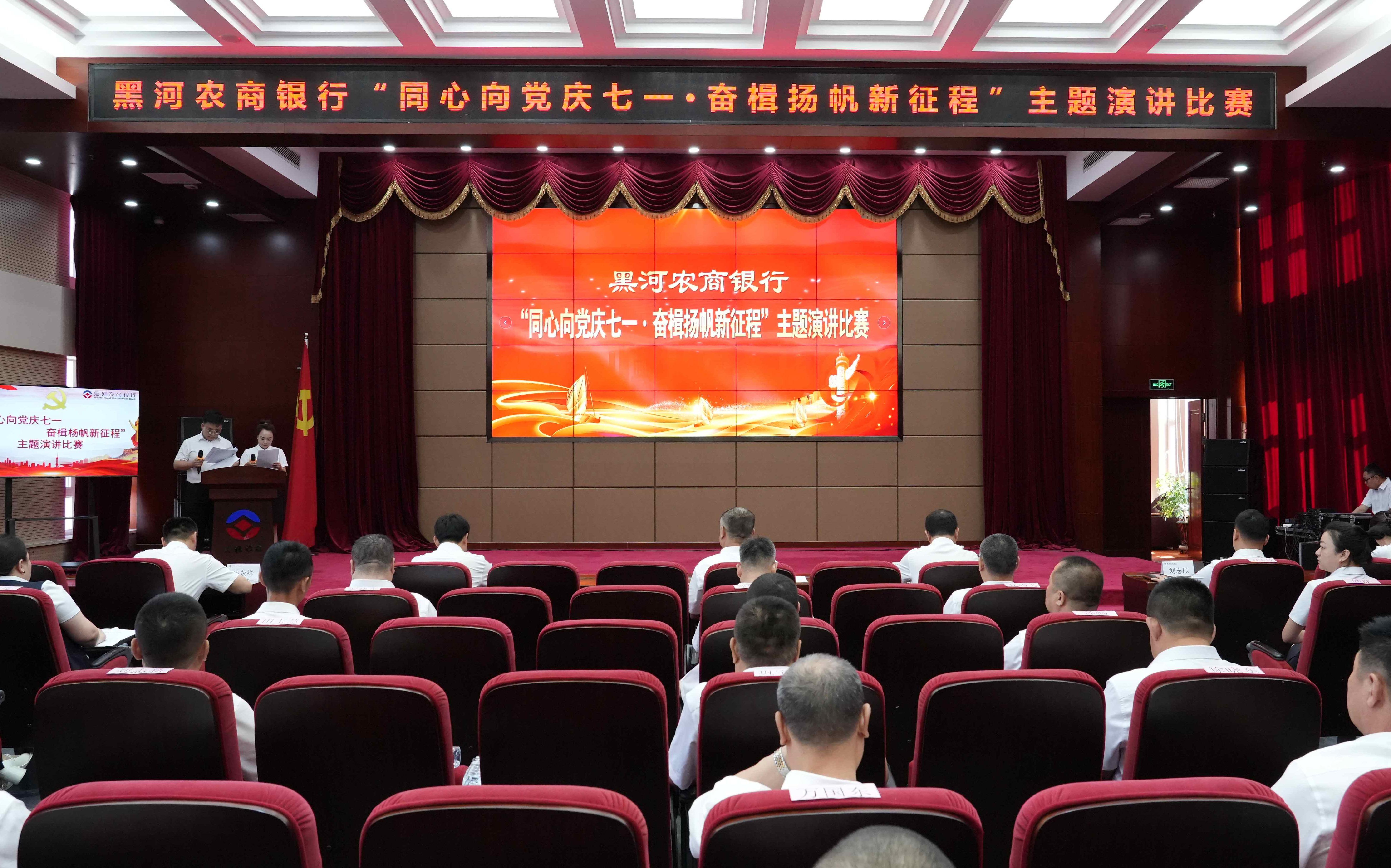 为庆祝中国共产党成立103周年,6月27日,黑河农商银行举办“同心向党庆七一·奋楫扬帆新征程”主题演讲比赛,深入推进党纪学习教育走深向实,引导全行广大干部员工深刻理解把握金融工作的政治性、人民性,大力倡导“农信姓党、金融报国”理念,增强推动高质量发展的使命感、责任感。总行机关助理级以上干部、各基层机构员工代表共计113人现场观赛。