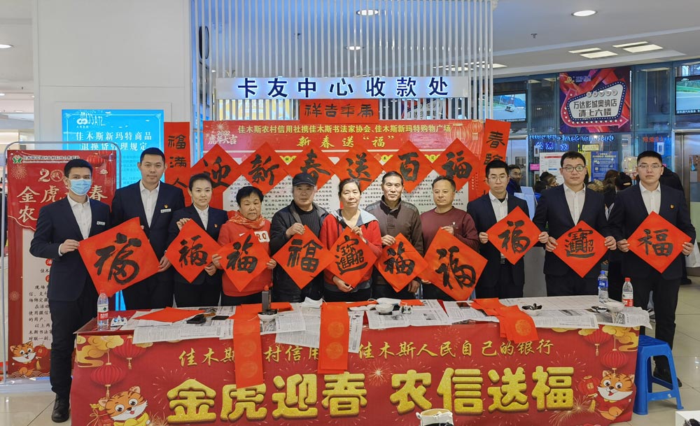 活动期间,佳木斯市郊区联社在百货大楼、新玛特商场为客户现场办理银行卡,并在消费现场赠送精美礼品。1月22日,郊区联社还携手佳木斯书法家协会为参与活动的客户现场书写对联一副。
